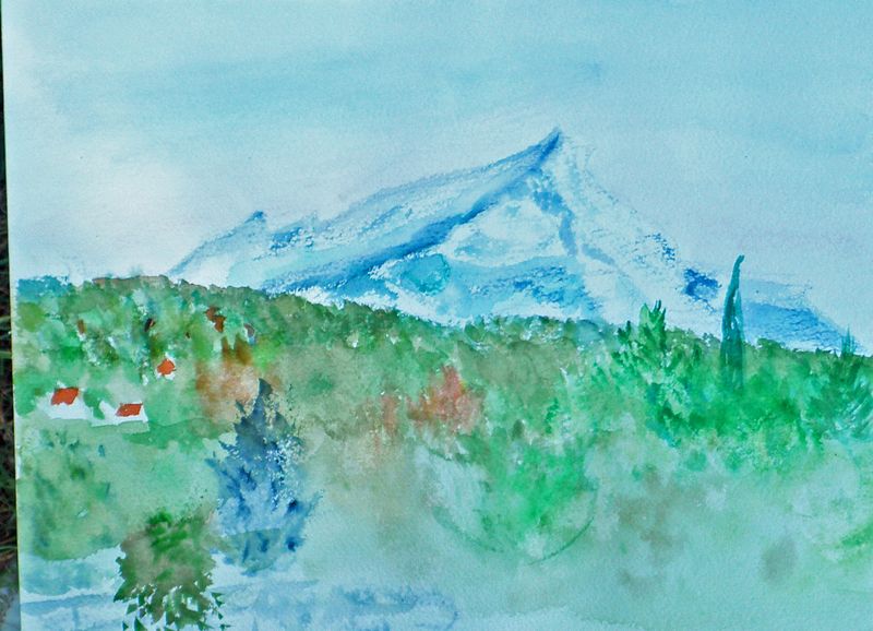 atelier en extérieur : peinture de Ste Victoire, vue du terrain de la