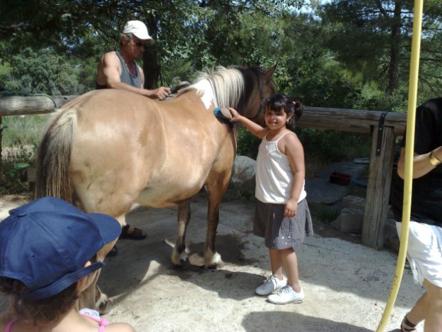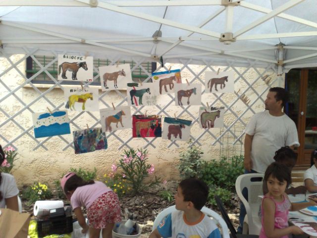 Juin 2009 : peindre des chevaux avec les enfants du Centre de Ressources Nord et quelques mamans les enfants visitent les installations, vont voir les chevaux et l'alpaga et aident à brosser le cheval "Brioche" qui leur servira de monture puis ils font chacun plusieurs tours à cheval, à un, à deux, et même à trois...pour rire; les enfants sont ravis.